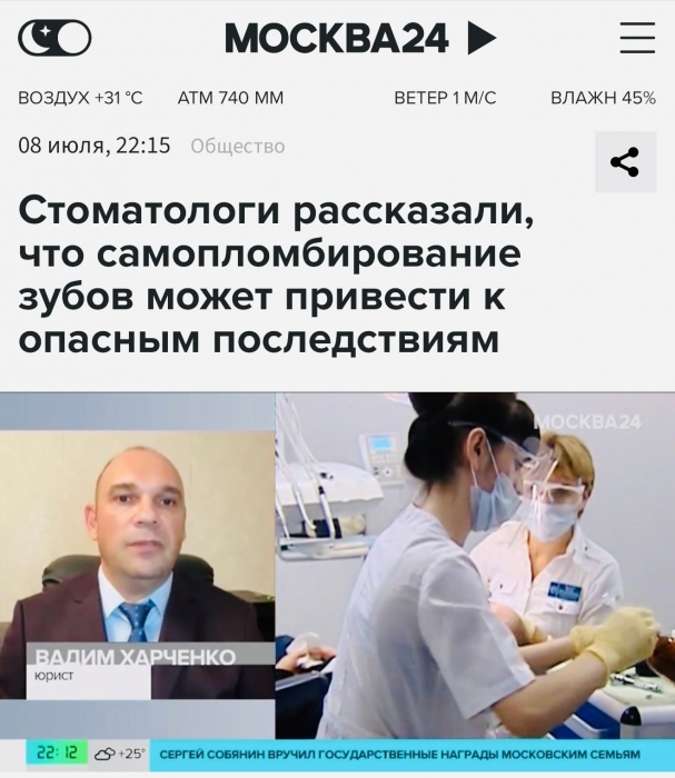 Выступление в СМИ. Правовые аспекты использования наборов для самостоятельной установки зубных пломб в домашних условиях.